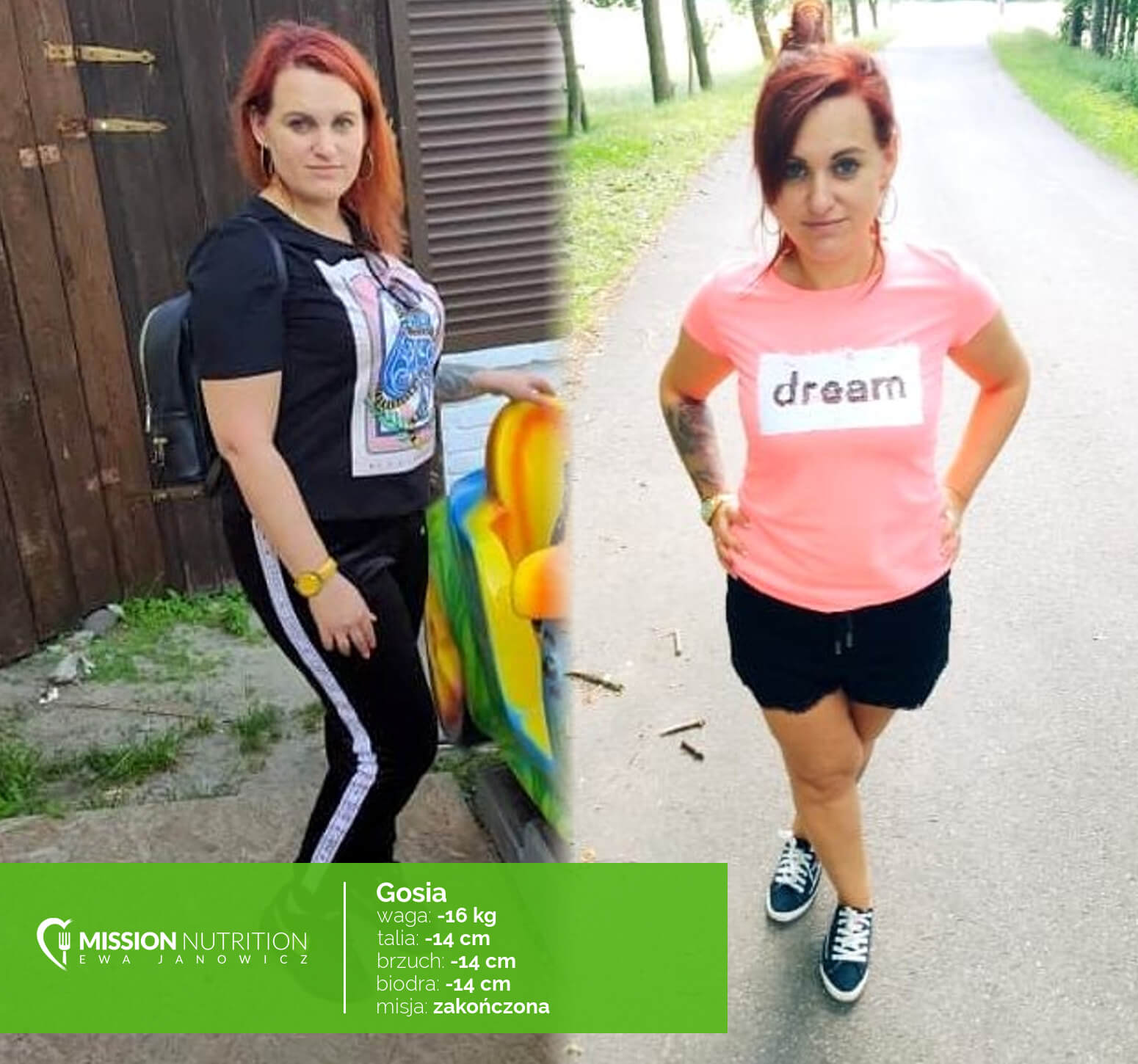 Dzięki całemu procesowi dostałam drugie życie pewność siebie i uśmiech na buzi wrócił. Tym, którzy zastanawiają się czy warto powiedziałabym, że samo zastanawianie się nic nie da – najlepiej, podnieść się, ruszyć po swoją dietkę i powiedzieć sobie: oczywiście, że dam radę a potem tylko cieszyć się z sukcesów bo jeśli czegoś bardzo chcemy to możemy to osiągnąć.”