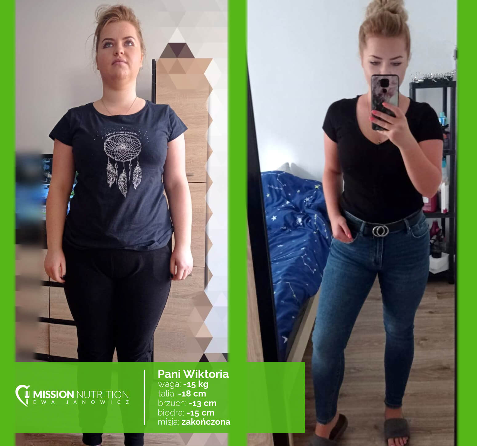 Zaskoczyło mnie to jak szybko było widać efekty współpracy z Panią dietetyk. Było to miłe i motywujące zaskoczenie. Po schudnięciu zyskałam zdecydowanie większą pewność siebie, czuję się dobrze w swoim ciele i nie patrze na siebie tak krytycznie jak przed przejściem na dietę. Zachęcam wszystkich, którzy źle się czują w swoim ciele do podjęcia decyzji o pójściu do dietetyka. Nie bójcie się, nie wstydźcie się.. Naprawdę warto się przełamać. Zróbcie ten pierwszy krok, a gwarantuje że nie pożałujecie.